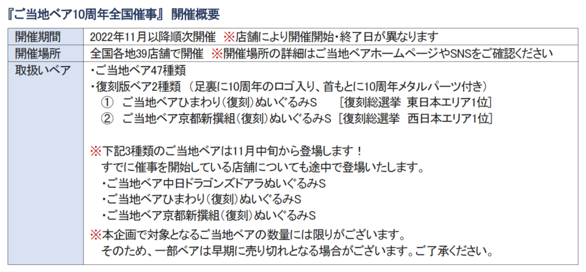 生誕10周年「ご当地ベア」47種類が集う全国催事、39か所で実施。復刻ベアも限定販売(5/6)