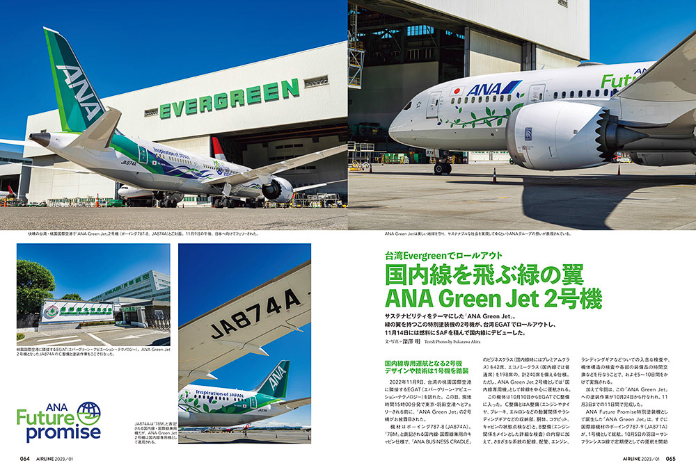 月刊エアライン2023年2月号、特集は1952年12月創立の「ANA 70周年ストーリー」。付録にANAカレンダーも