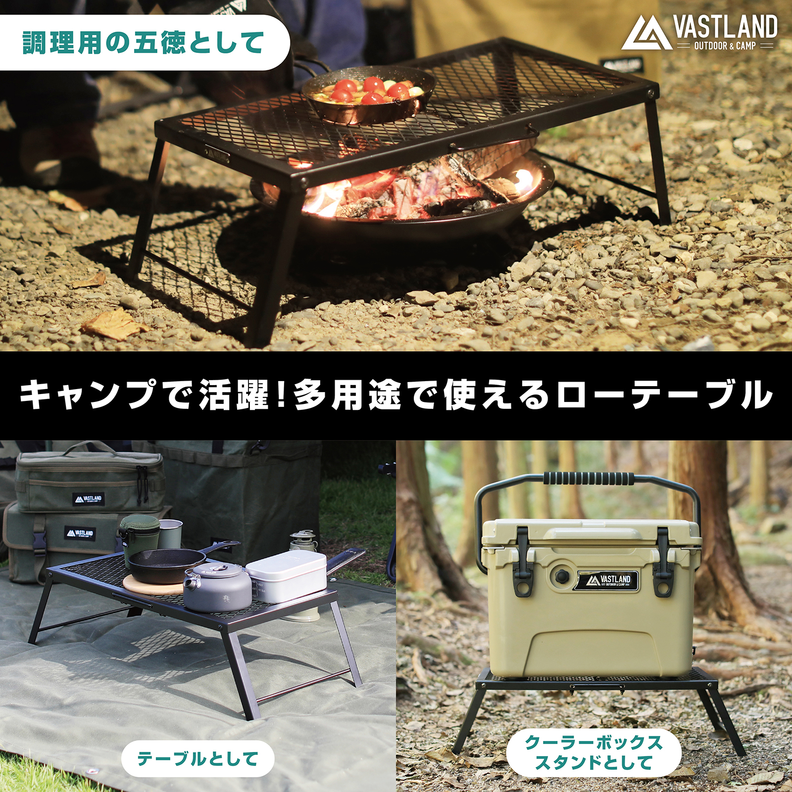 VASTLAND、600℃耐熱塗装仕上げのローテーブル「焚き火メッシュテーブル」先行販売(9/11)