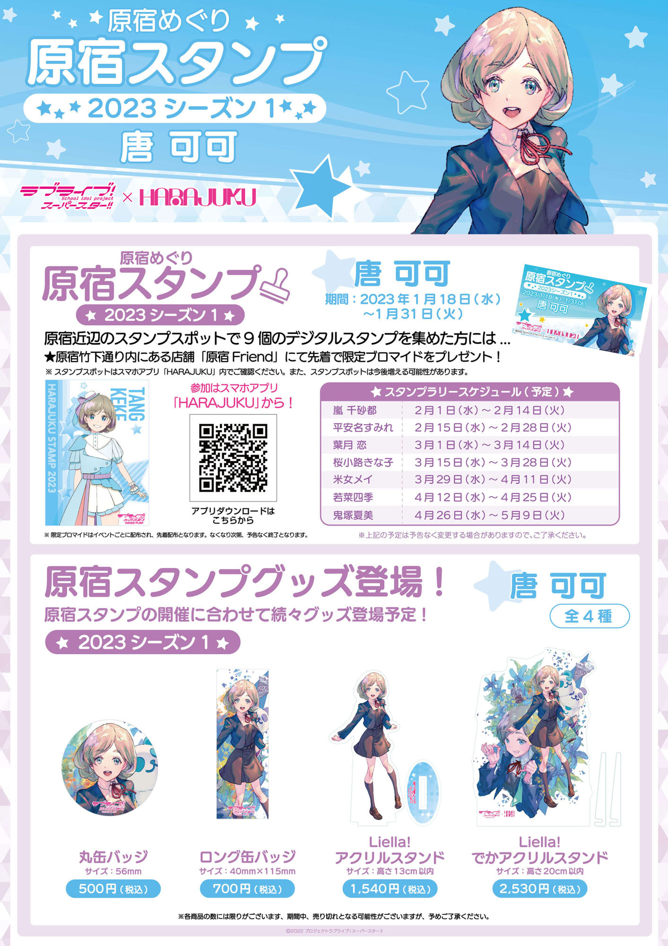ラブライブ!スーパースター!!×原宿のスタンプラリー、桜小路きな子編。限定ブロマイド配布やアクスタ販売など