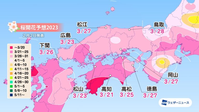 日本気象協会、第1回2023年桜開花予想。全国的に平年並み、開花トップは高知で3月21日