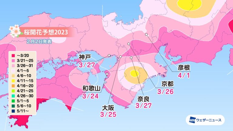 2023年の桜開花トップは東京で3月20日、開花時期は広範囲で平年並みに。ウェザーニューズ「第2回桜開花予想」(5/12)