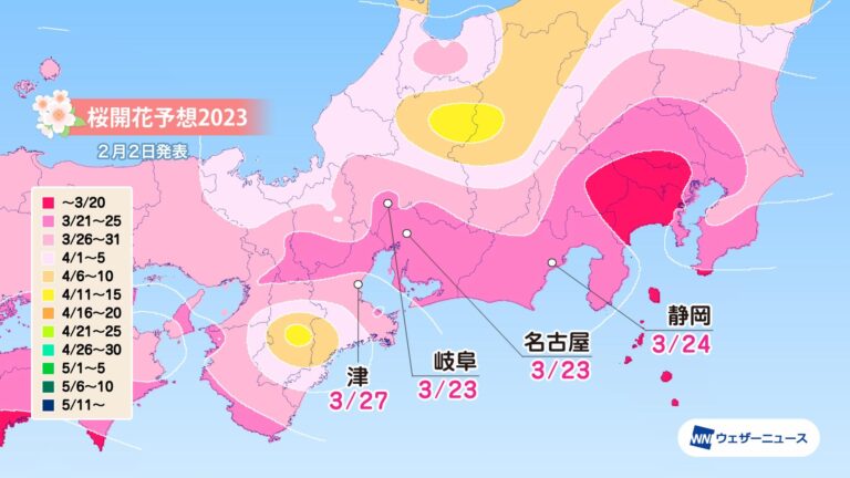 2023年の桜開花トップは東京で3月20日、開花時期は広範囲で平年並みに。ウェザーニューズ「第2回桜開花予想」(6/12)