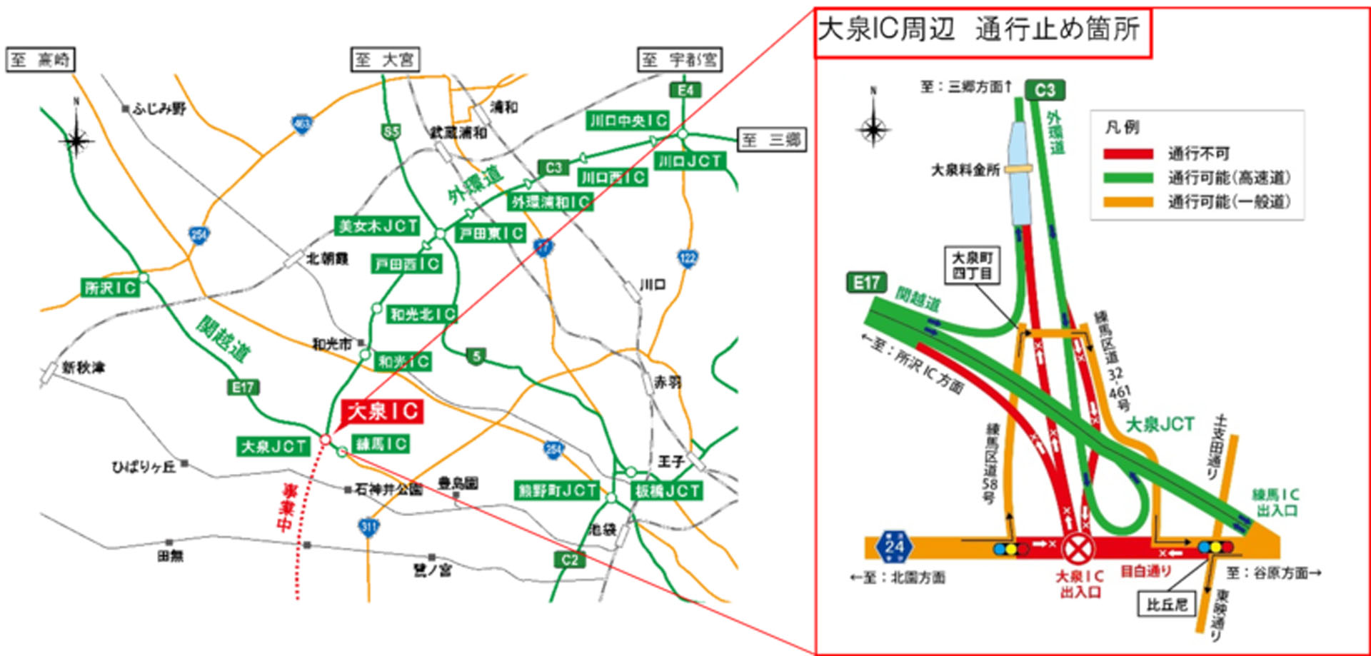 7月6日に外環・関越 大泉ICで夜間ランプ閉鎖。目白通りの一部区間も夜間通行止め