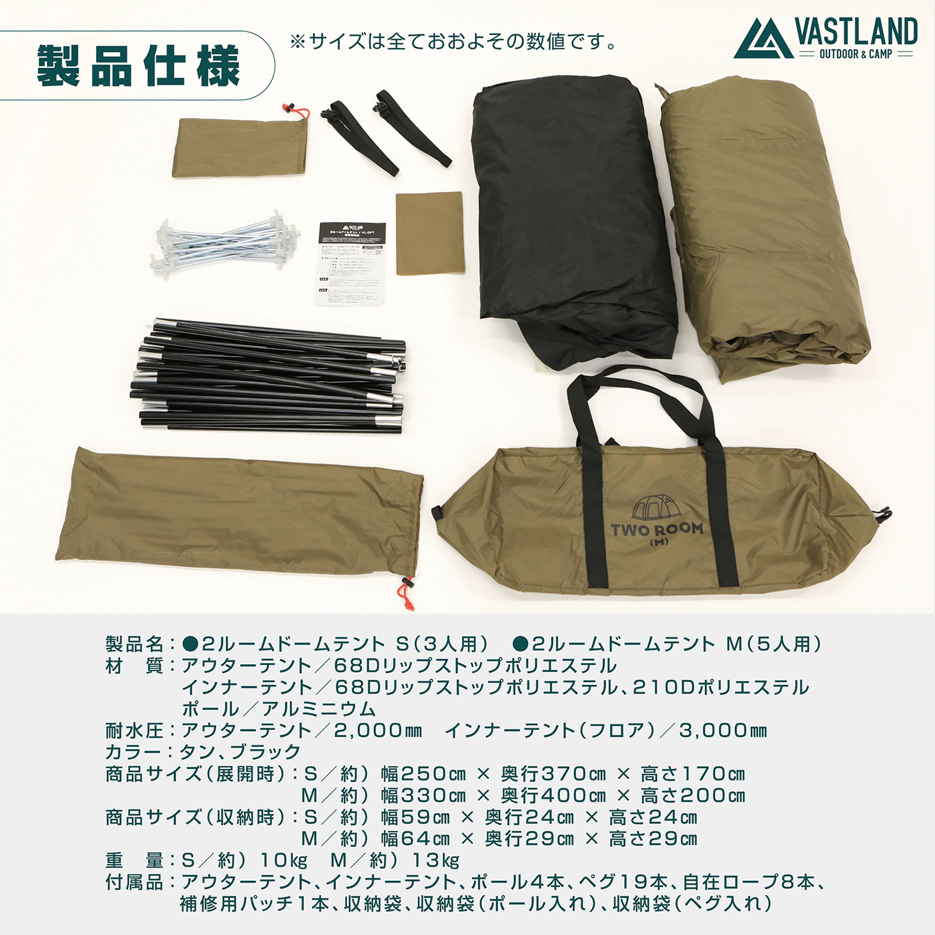 VASTLAND、シェルターテントになる「2ルームドームテント」。ペグダウンなしで自立、設営後も移動できる(9/17)