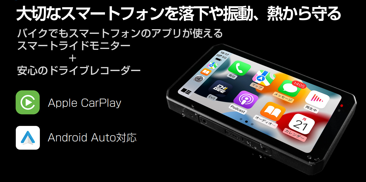 バイク向けドラレコ付き7インチディスプレイオーディオ。Makuake先行で35%オフ(4/7)