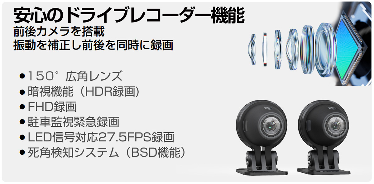 60gのバイク用ドラレコ「BDVR-B001」1440p/28fps対応。ヘルメット、ミラー、ハンドルなどに取り付け可