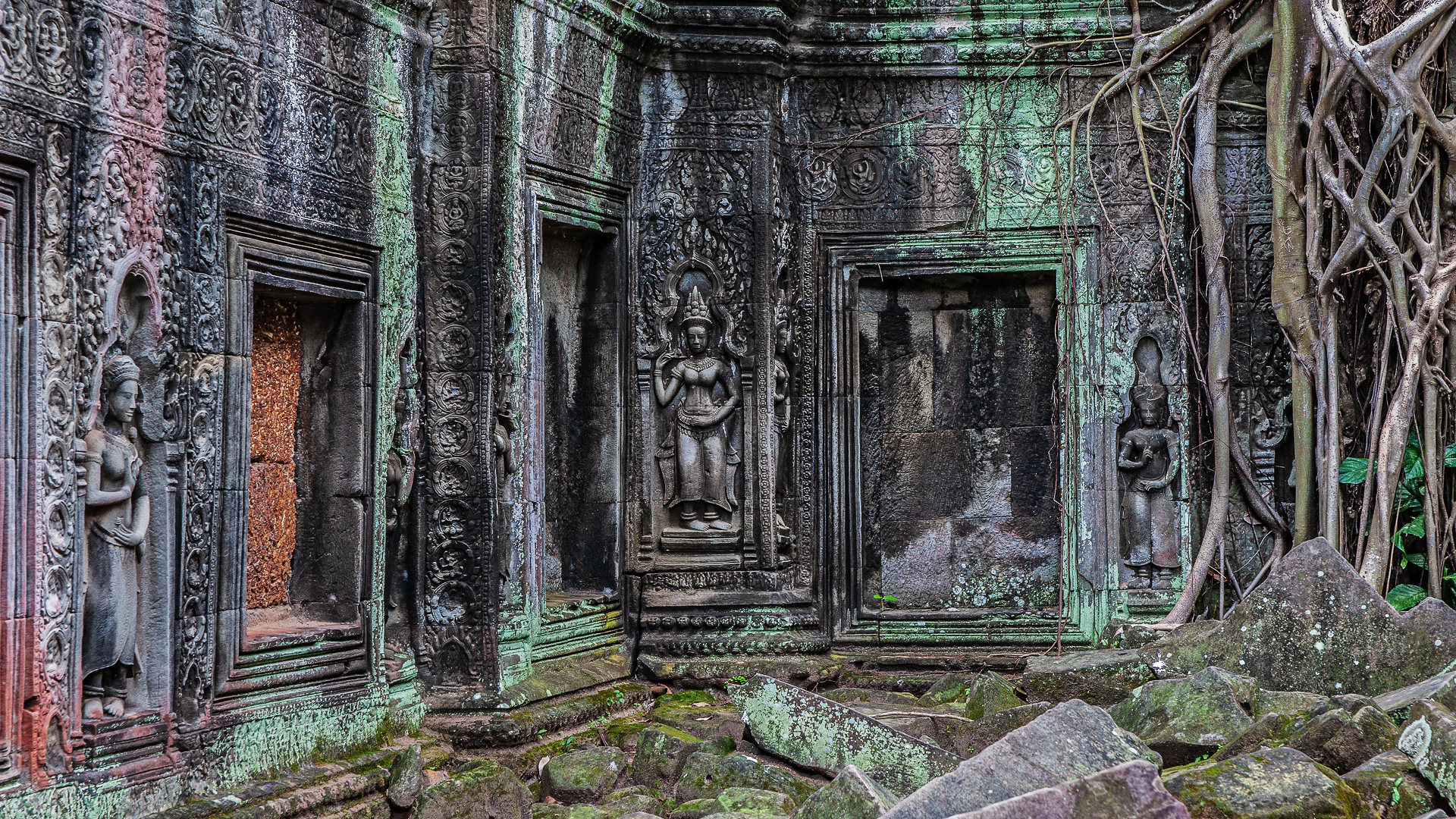 ガジュマルの木に覆われた遺跡「タ・プローム」(カンボジア)