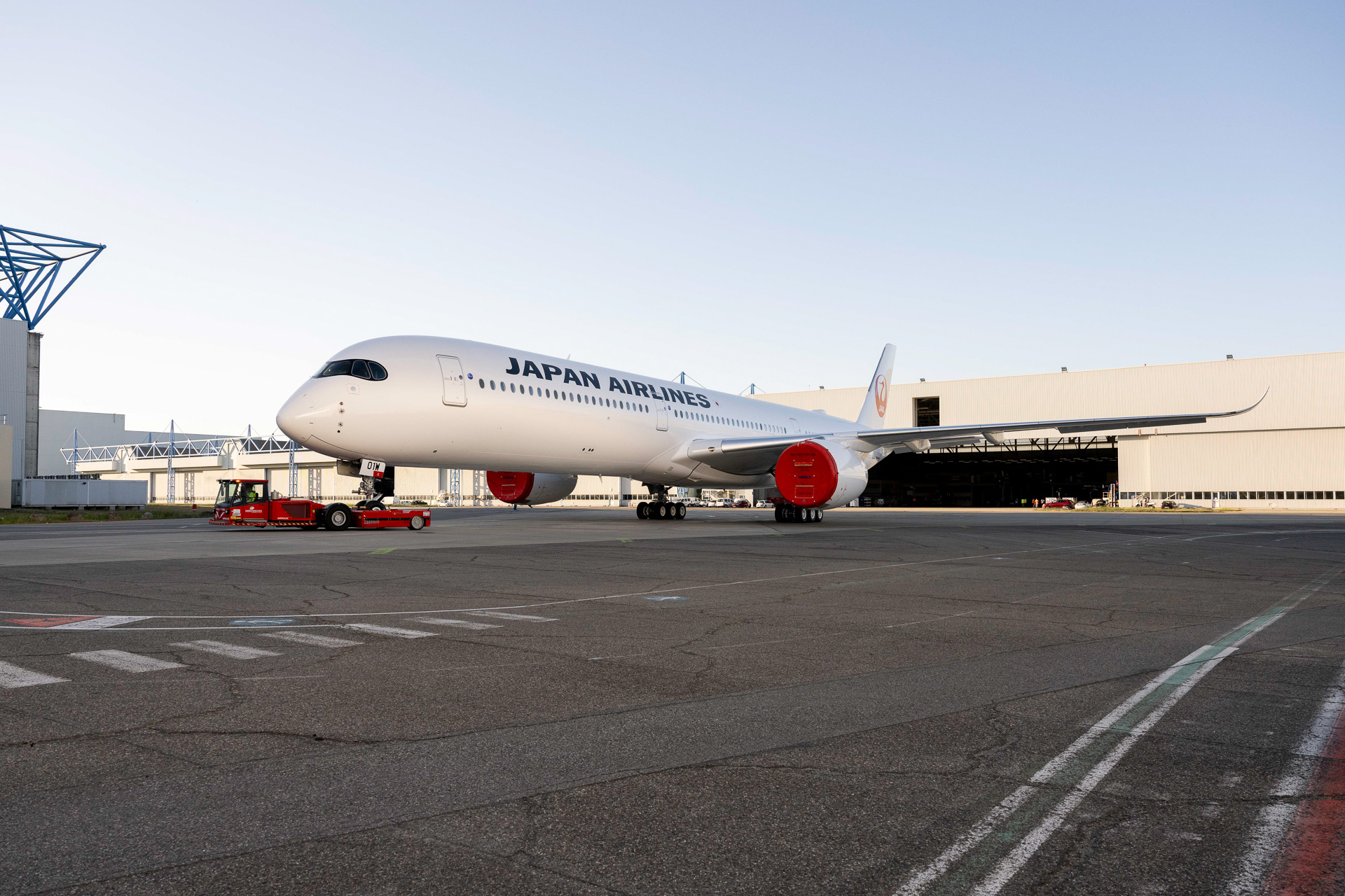 JAL国際線の新機材A350-1000、初号機をチラ見せ! 鶴丸ロゴが描かれる