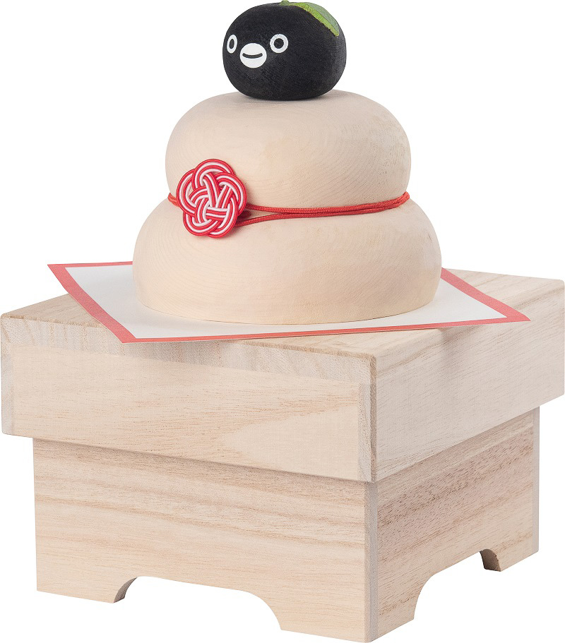 Suicaのペンギンが木彫りの鏡餅に! 橙の代わりにちょこんと乗った顔がかわいい(4/5)