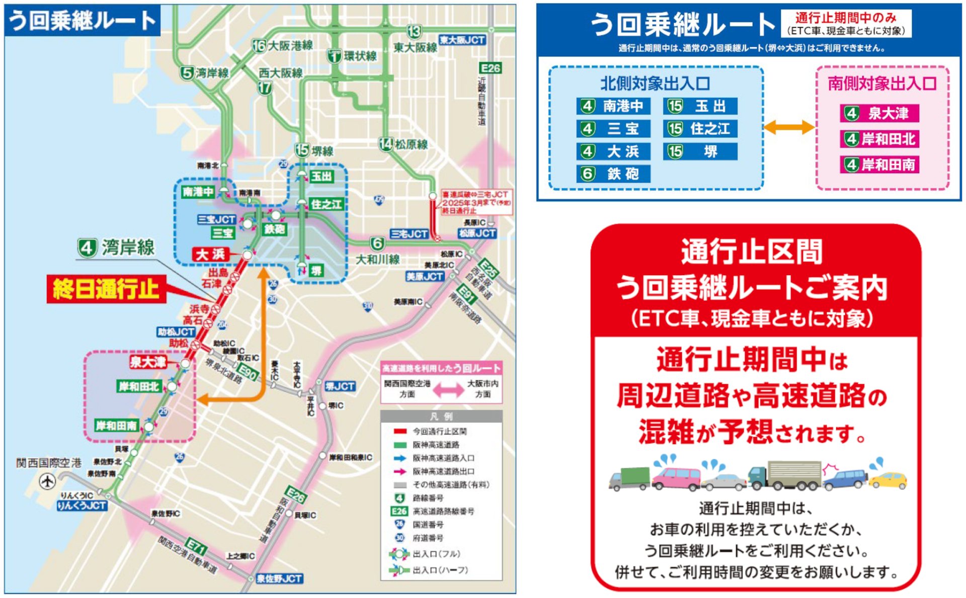 阪神高速4号湾岸線 貝塚~りんくうJCTで11月に終日通行止め