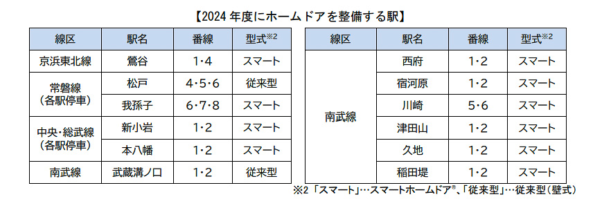JR東日本、今年度ホームドア整備対象駅を15駅追加。南武線は大部分が対象に