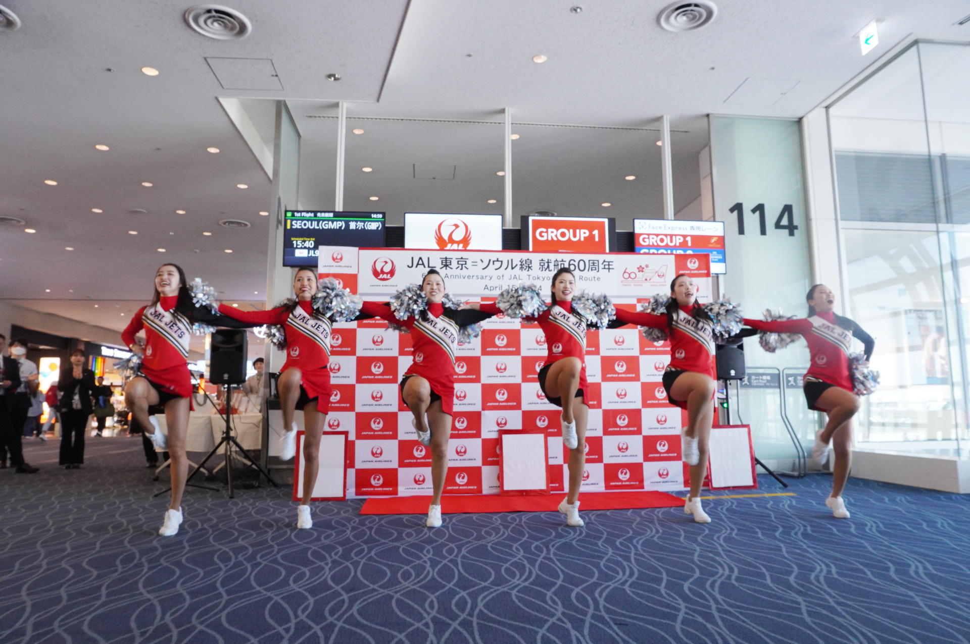 JAL、東京~ソウル線の就航60周年で搭乗客にサプライズ。TWICEの人気曲チアダンスと記念品でJL93便を見送る(4/24)