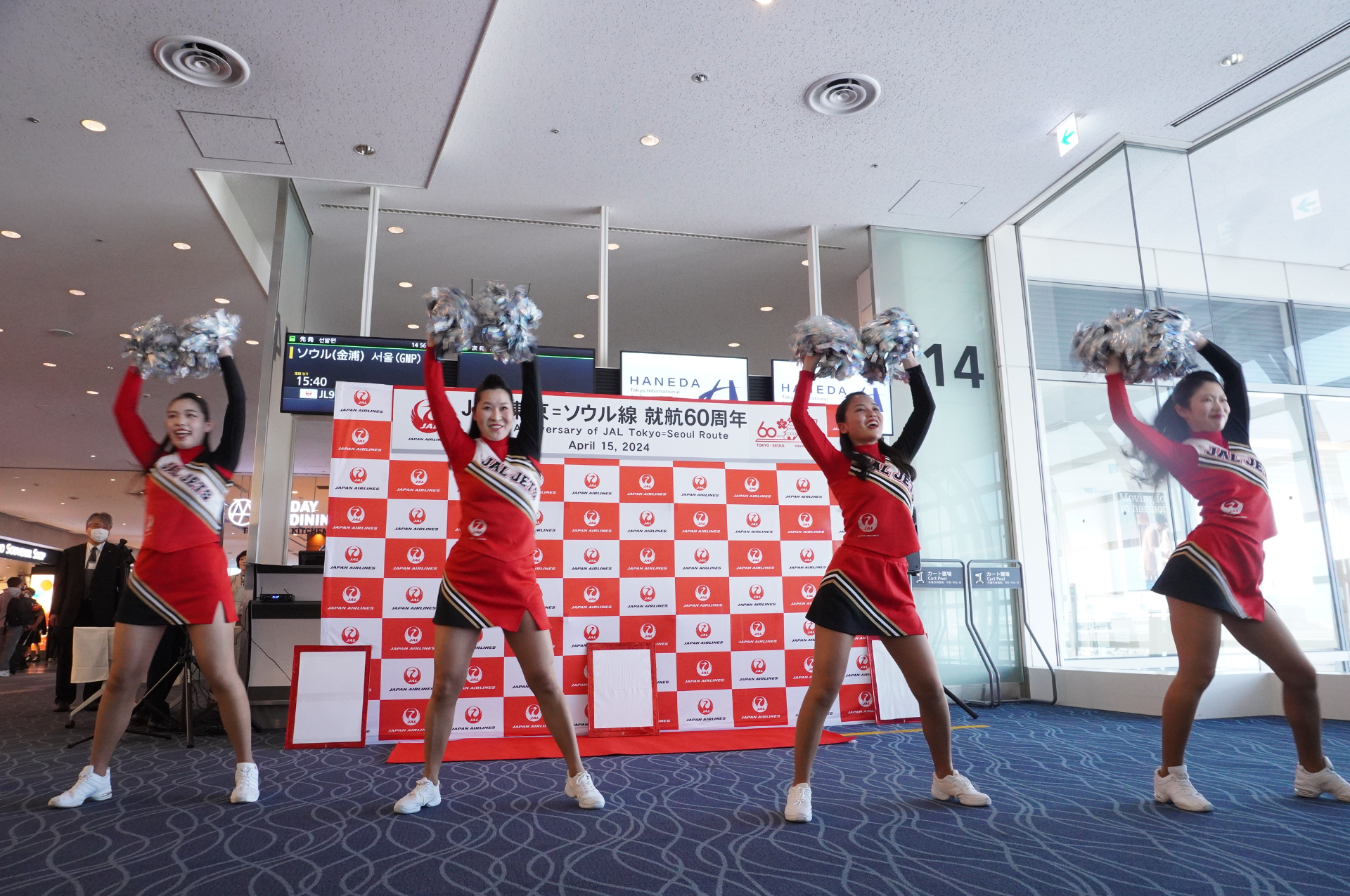 JAL、東京~ソウル線の就航60周年で搭乗客にサプライズ。TWICEの人気曲チアダンスと記念品でJL93便を見送る(3/24)