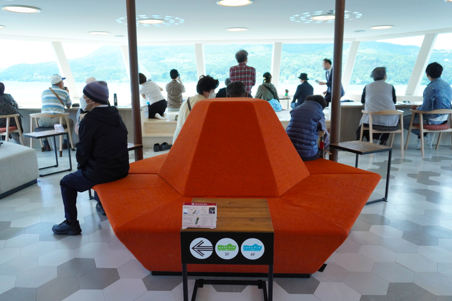 富士山の日にデビューした遊覧船「箱根遊船 SORAKAZE」で芦ノ湖絶景旅へ。ご利益ありそうなユニークな船内を見てきた(48/70)