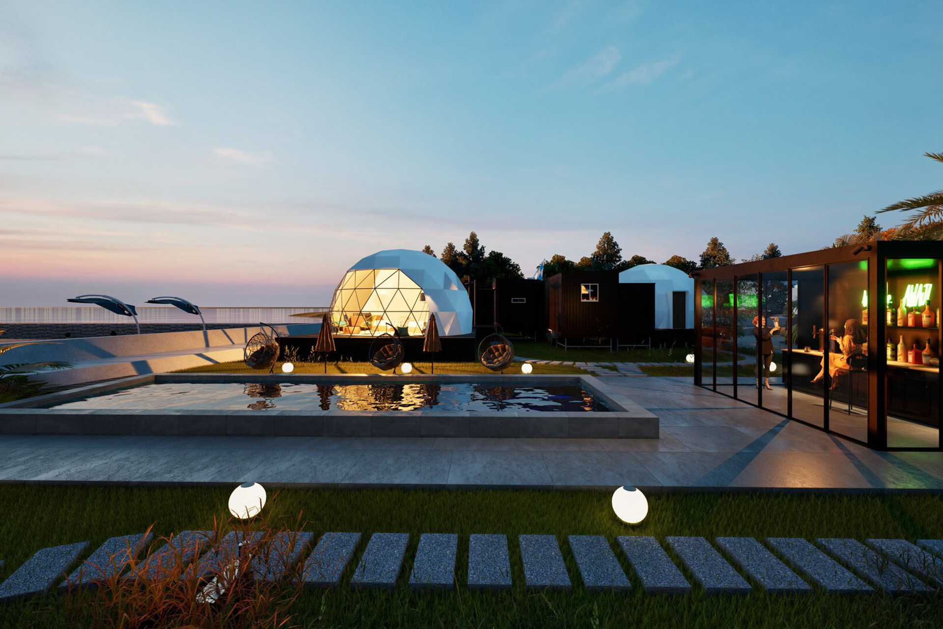 ビーチがすぐ隣! プール/インクルーシブBARがついた1日4組限定の「シーサイドグランピング淡路」開業(10/12)