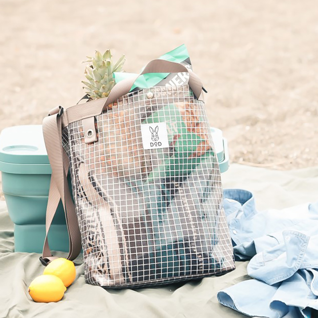 DOD、夏の水遊びで濡れたものを入れられる大型メッシュトート「SUMMERTIME AMI-CHANG」