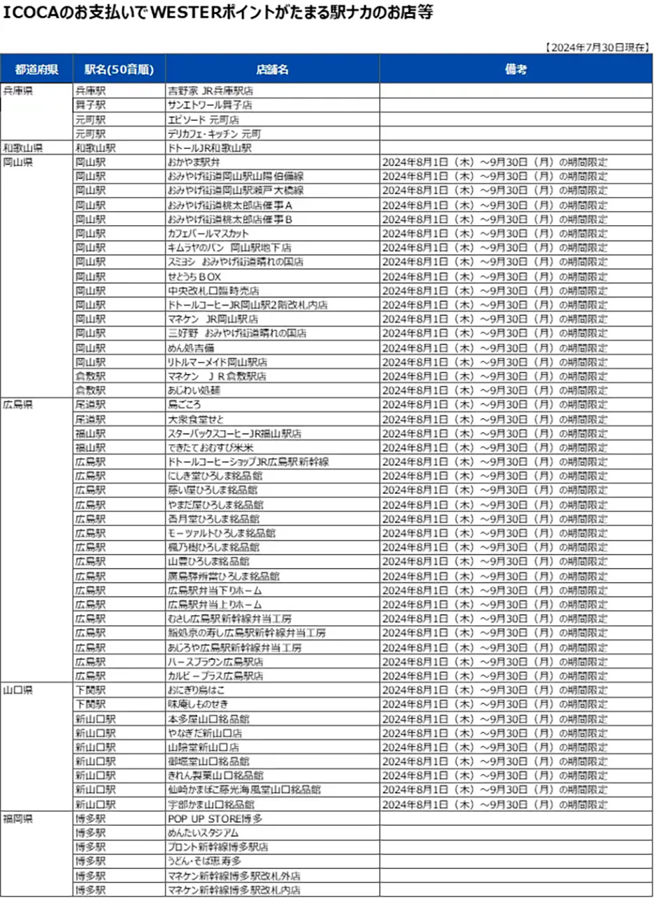 JR西日本、総額2400万WESTERポイント山分けキャンペーン。10月2日~11月2日実施