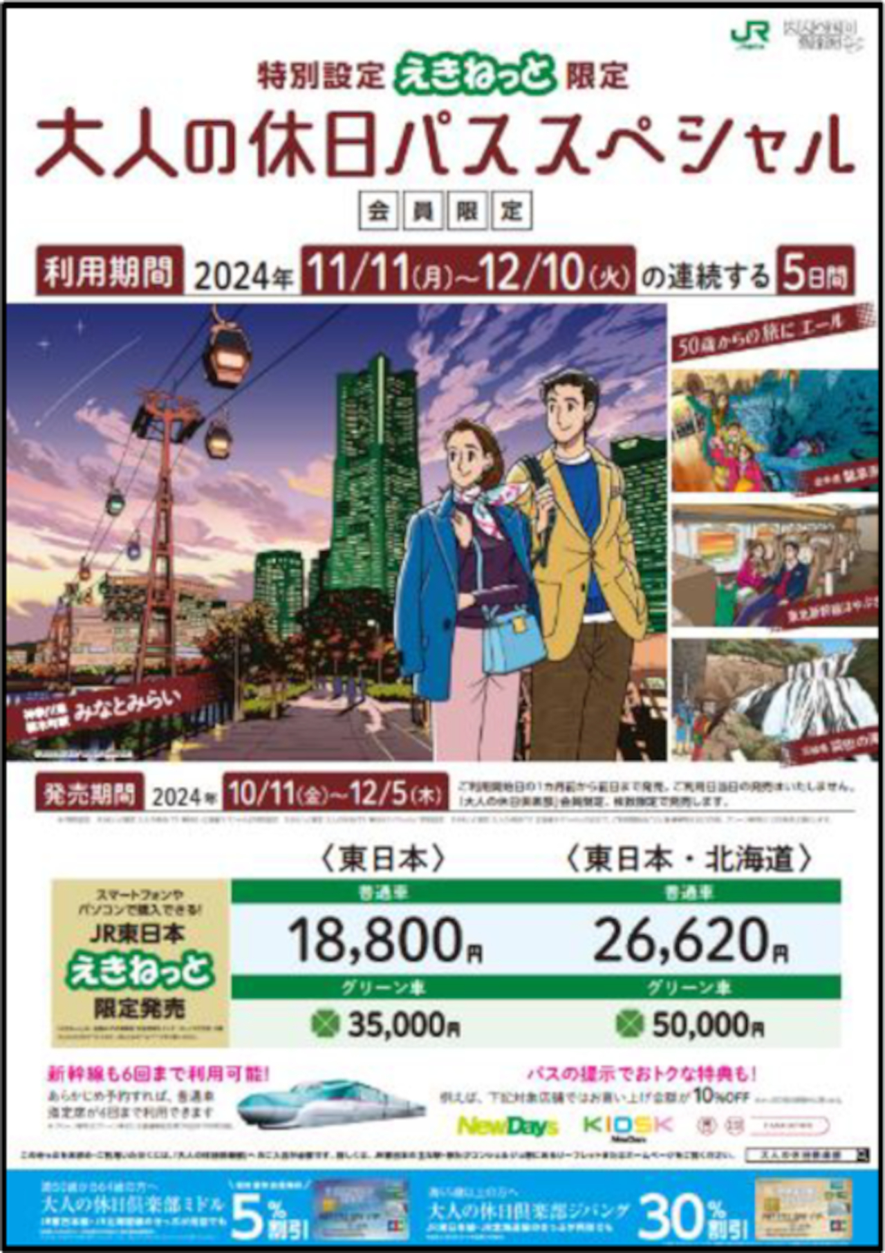 JR北海道・JR東日本、えきねっと限定「大人の休日パス スペシャル」。グリーン車の乗り放題も