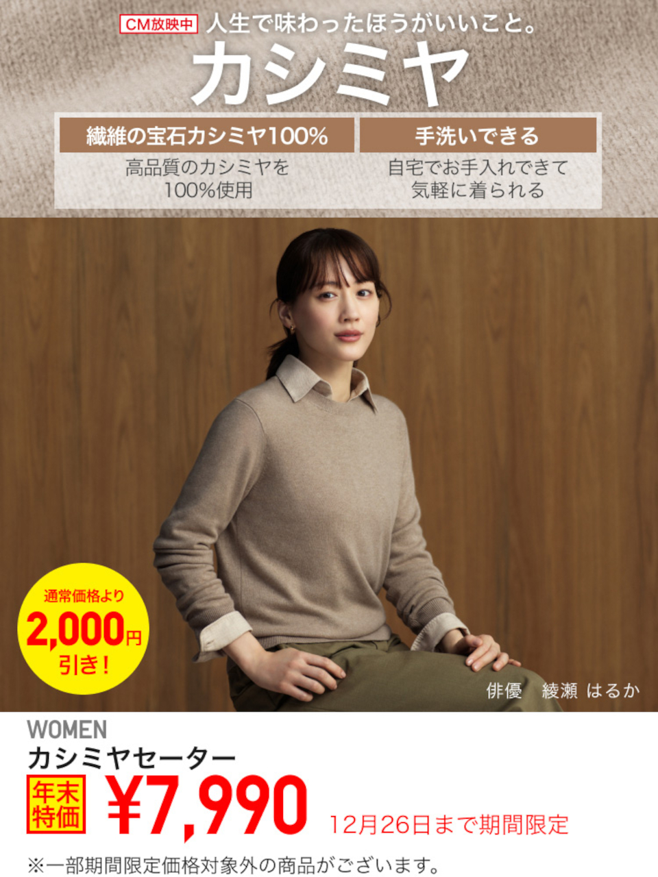 ユニクロ感謝祭、11月22日~28日開催。冬の防寒アウター/カシミヤ/ヒートテックなど特価に