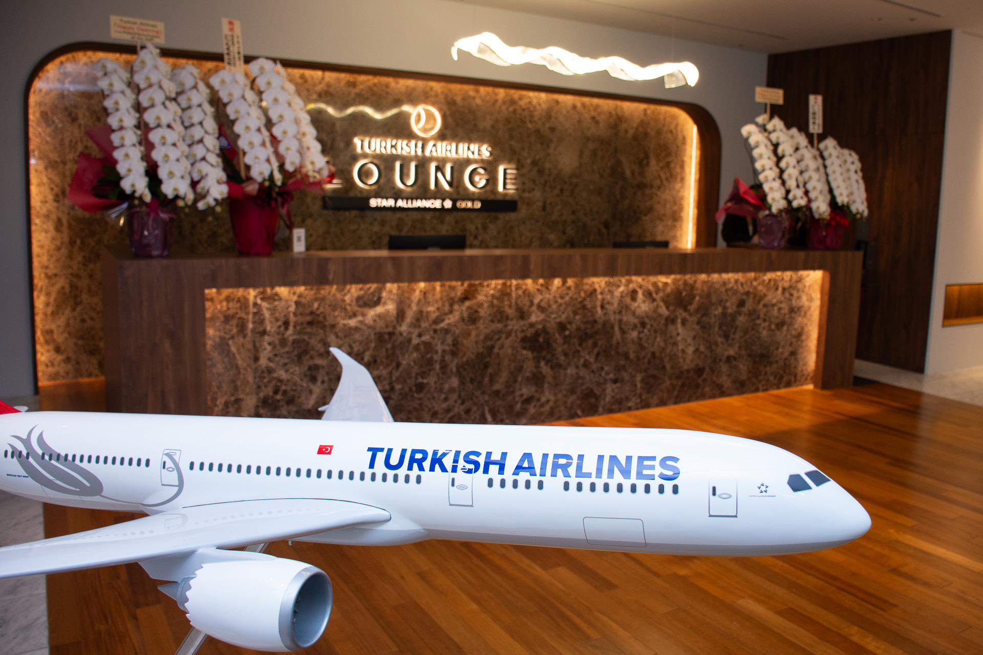 ターキッシュ エアラインズ、日本路線に投入している787-9型機のビジネスシート展示。快適リクライニングを試せる