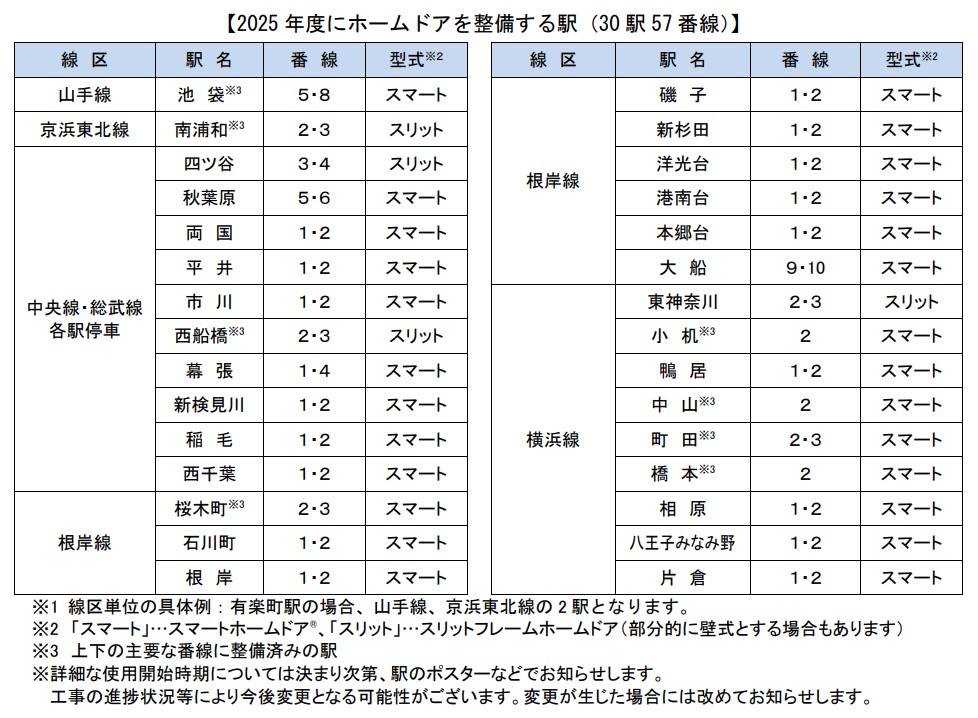 JR東日本、2024年度のホームドア整備計画を発表。南武線など12駅26番線で