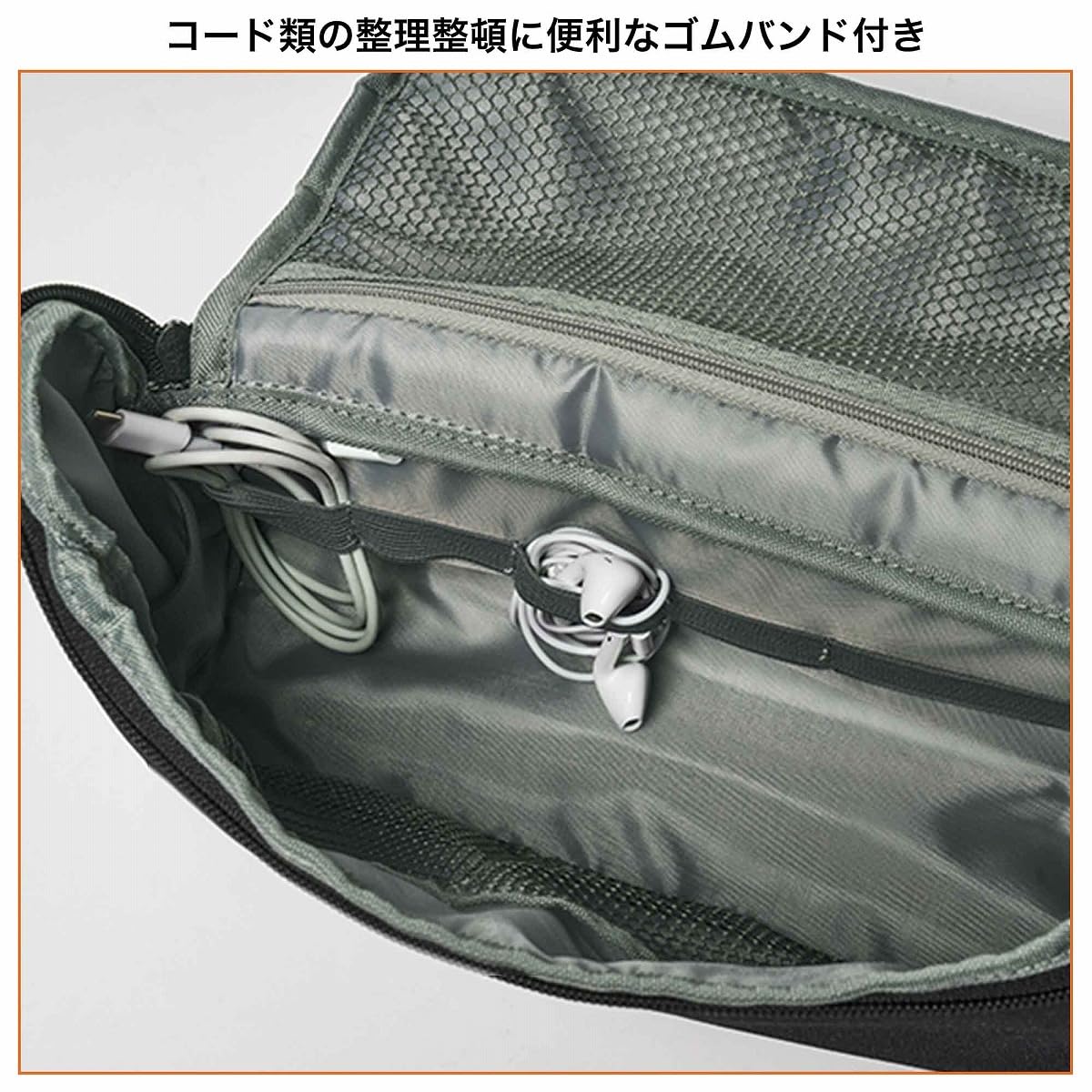 ファミマ限定「DOD」多機能ボディバッグ、ガバッと開いて中身が見やすく収納力あり。ベージュ/ブラック