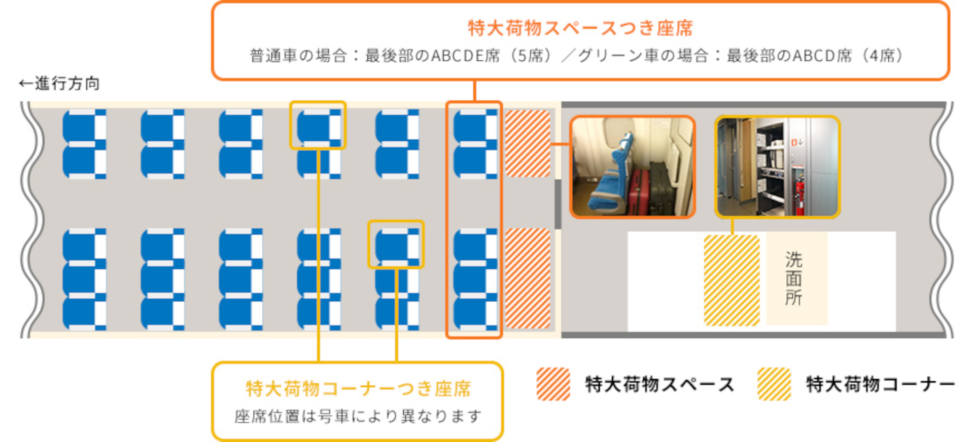東海道・山陽新幹線、特大荷物コーナーつき座席を7月1日から販売休止。予約なし荷物置場の試行に伴い