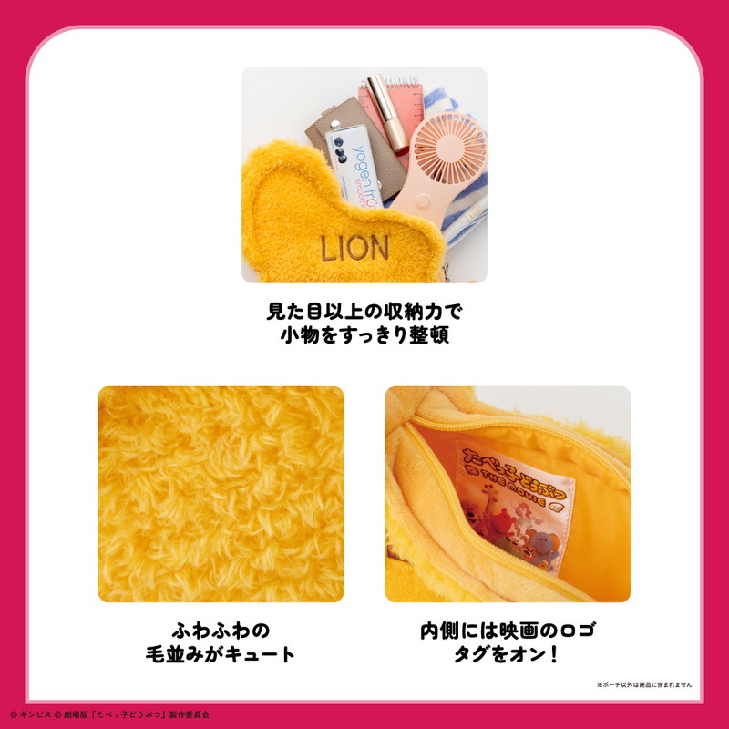 ギンビス「たべっ子どうぶつ」ふわふわポーチ&チャーム。らいおん/ねこのビスケット再現(4/7)