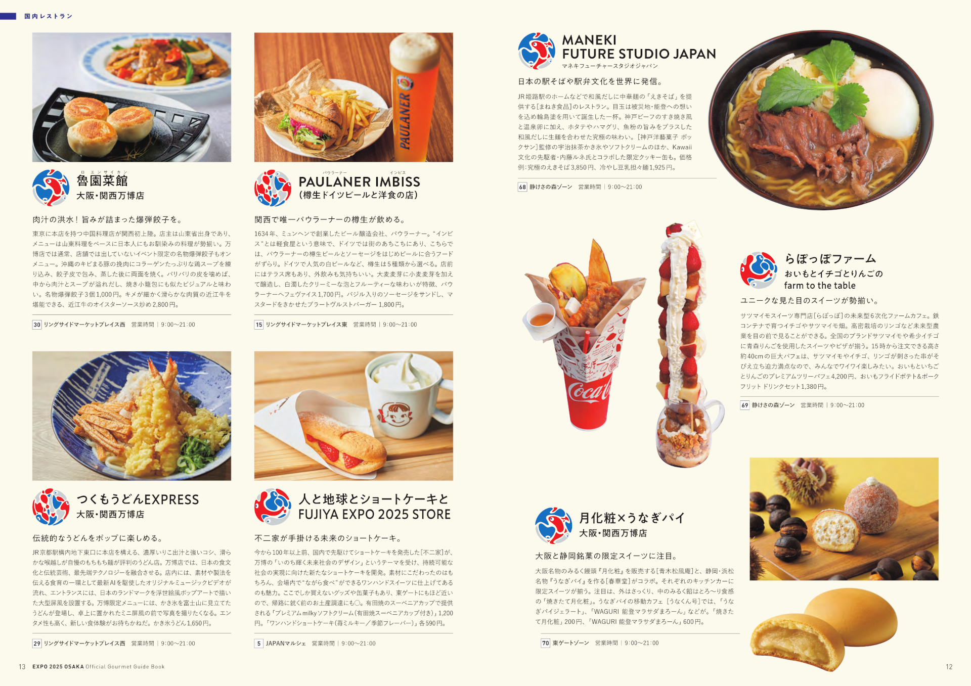「万博で何食べる?」公式グルメガイドがPDFで無料公開。メニュー/価格/営業時間などが1冊に(8/14)