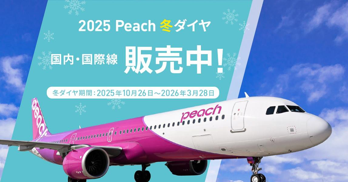 ピーチ、10~1月搭乗分の「弾丸往復運賃」発売。国内線7000円~/国際線9200円~