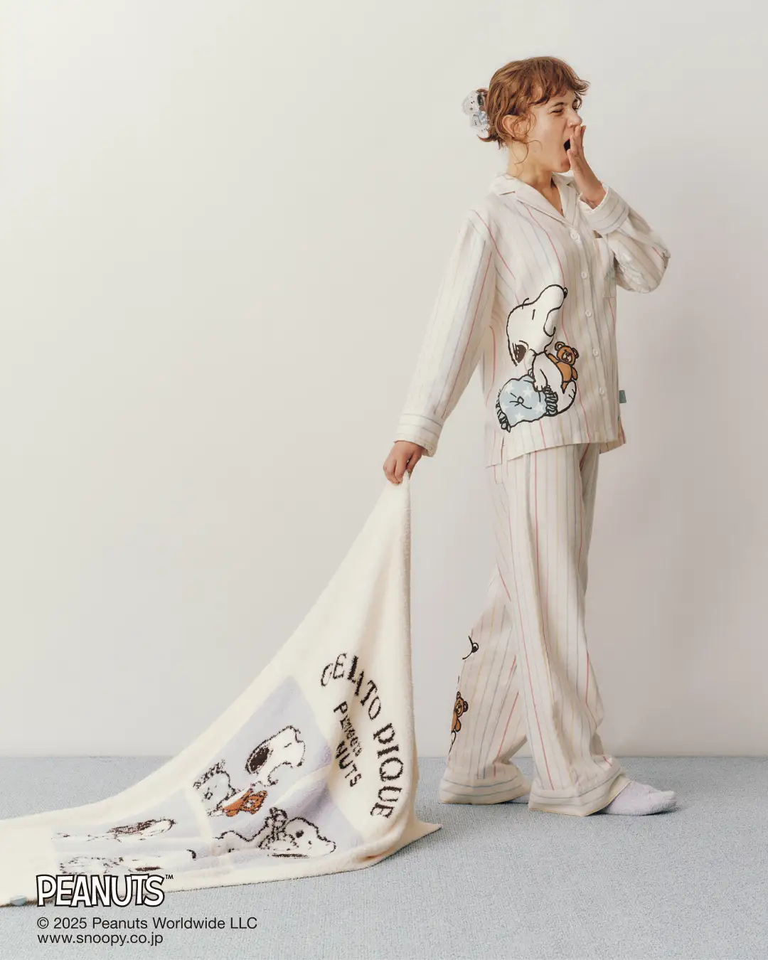 「GELATO PIQUE meets PEANUTS」11月発売。スヌーピーたちのルームウェア姿を描いたアイテム、寝具やバッグ類も(12/18)