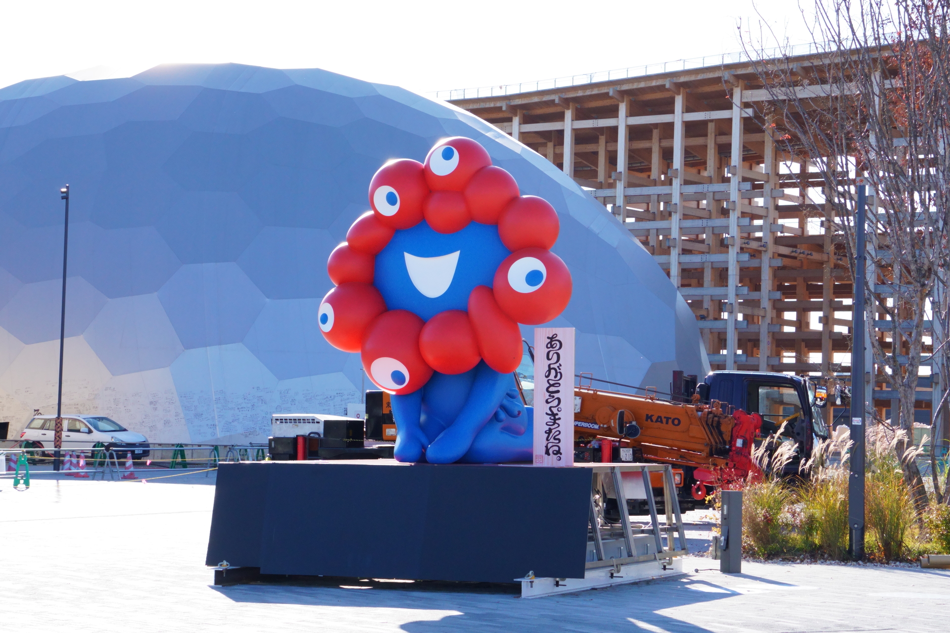 ねそべりミャクミャク像、大阪市役所から南港ATCへの移設決定。記念セレモニーは観覧自由