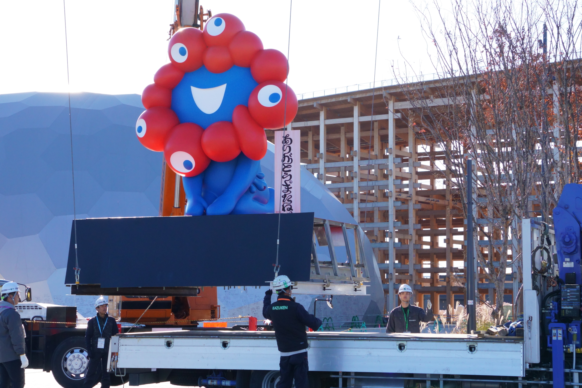 ねそべりミャクミャク像、大阪市役所から南港ATCへの移設決定。記念セレモニーは観覧自由
