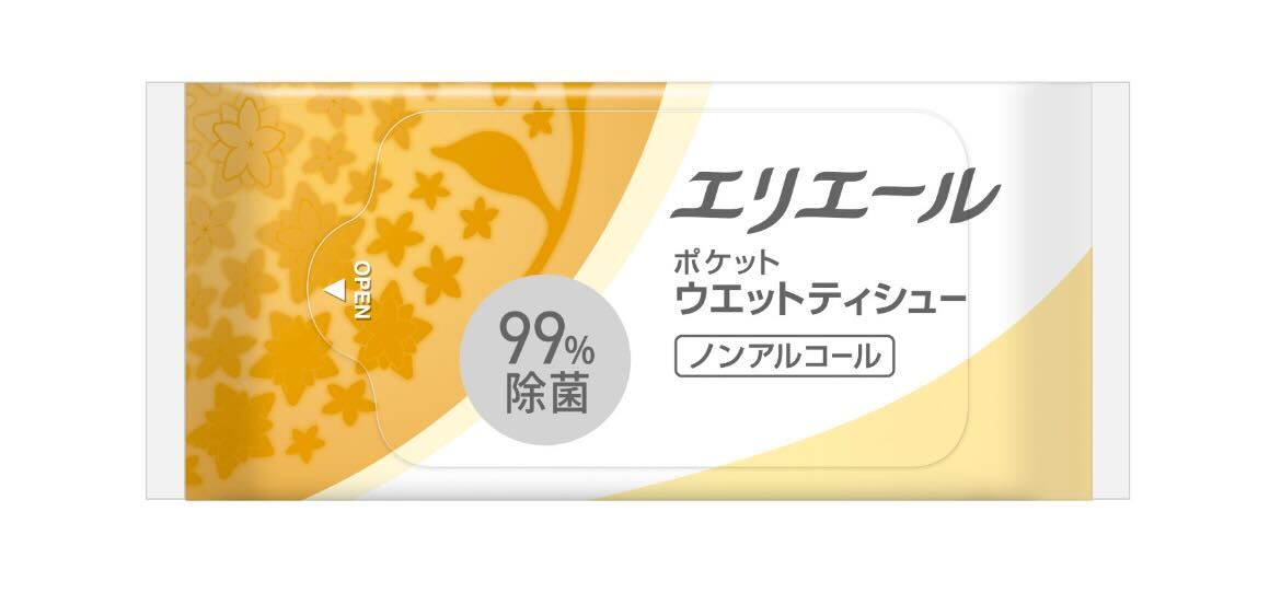 エリエール、アルコール濃度25%増しのウェットティッシュ携帯用