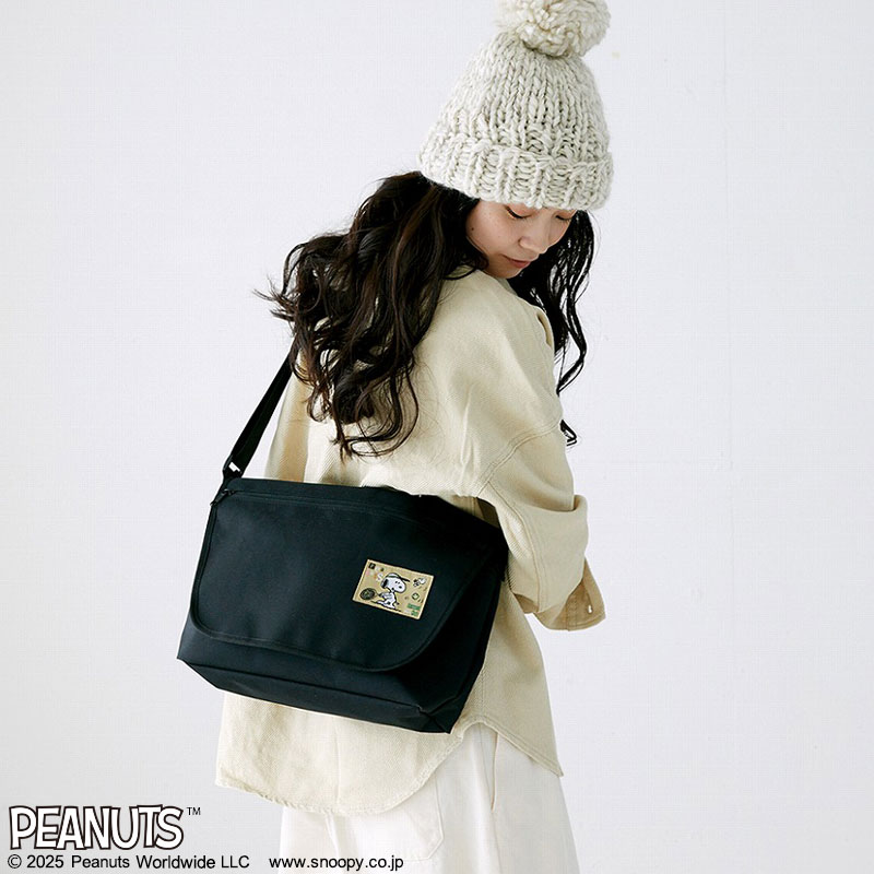本日発売「スヌーピー」キルティングバッグ。黒地に太めショルダーが華やか!