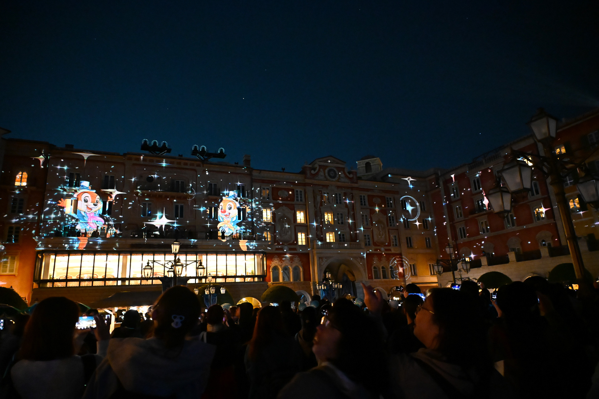 25周年の夜はホテルミラコスタの壁面で映像演出あり。「スパークリング・ジュビリー・ナイト」で思い出に浸ろう(12/27)