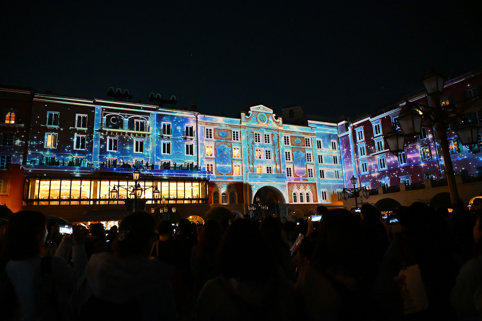 25周年の夜はホテルミラコスタの壁面で映像演出あり。「スパークリング・ジュビリー・ナイト」で思い出に浸ろう(14/27)