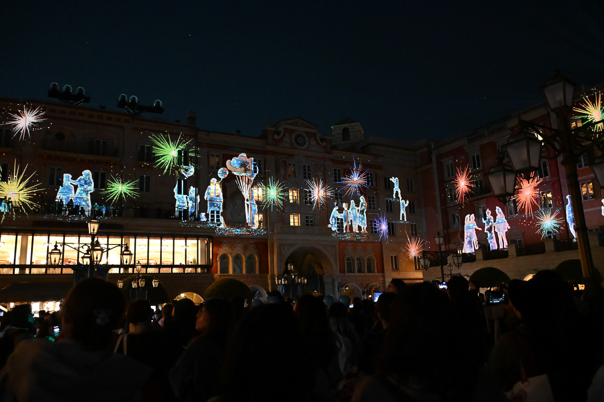 25周年の夜はホテルミラコスタの壁面で映像演出あり。「スパークリング・ジュビリー・ナイト」で思い出に浸ろう(15/27)